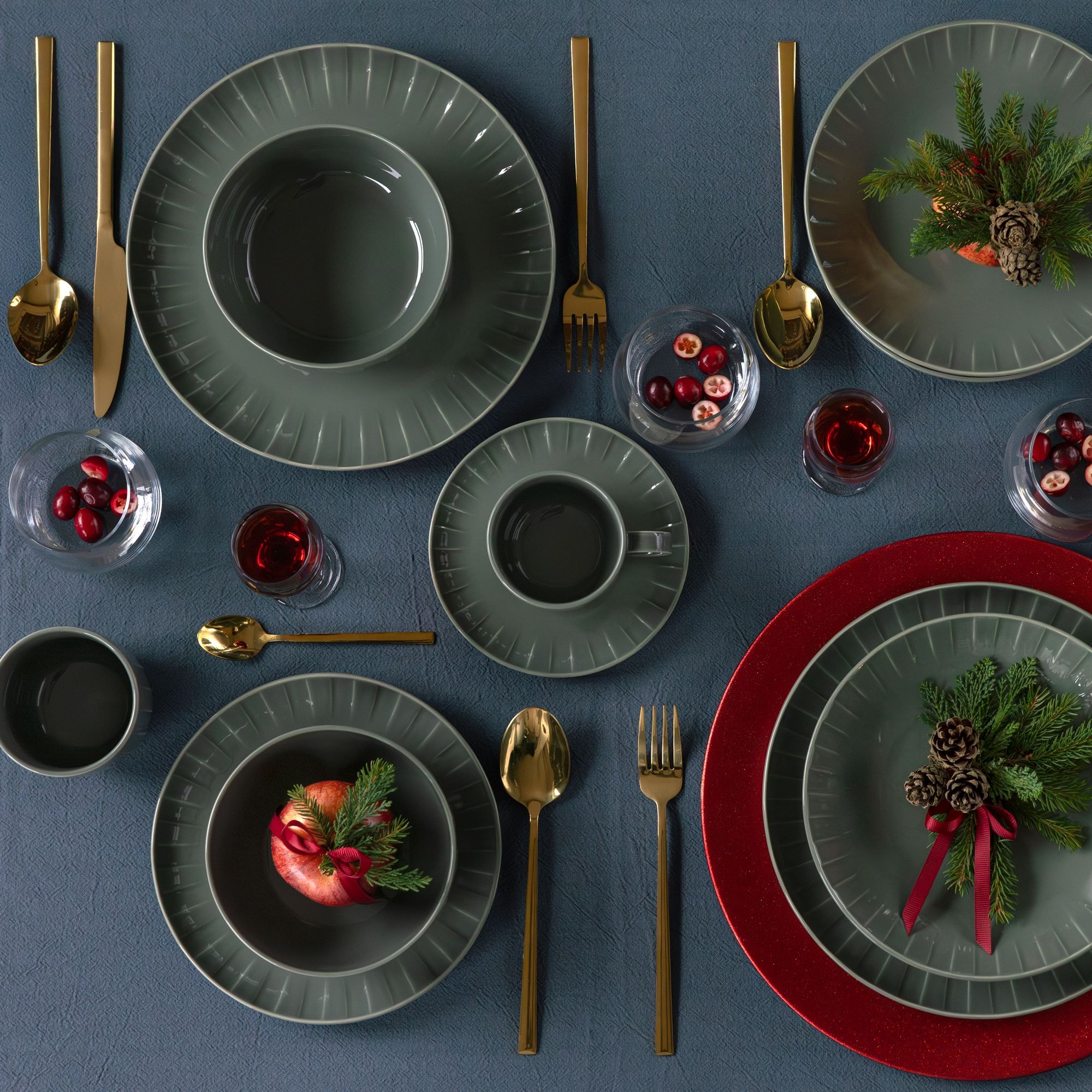 Remember the classic rule: arrange cutlery in the order of use, from outside to inside. Gold cutlery Prato or Napoli will perfectly match the green shade of the dinnerware. Remember to: