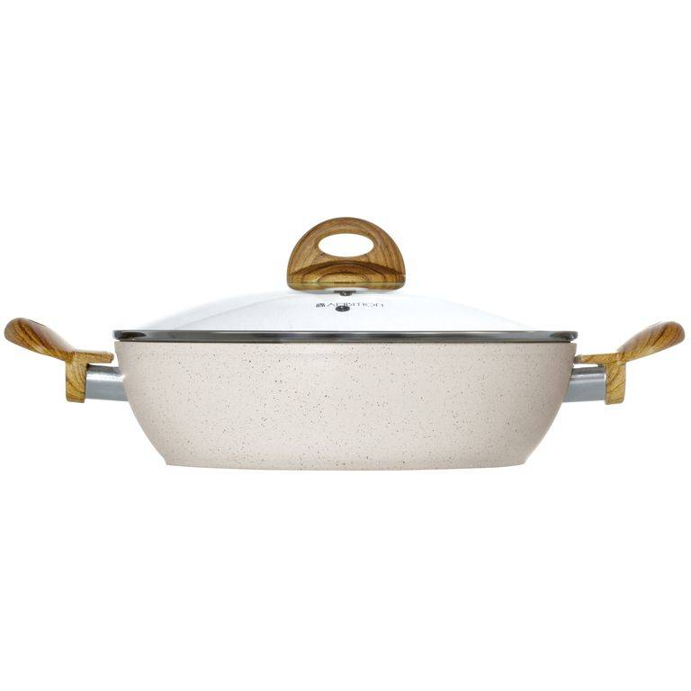 - Komfort użytkowania: ergonomiczne uchwyty soft-touch imitujące drewno gwarantują pewny chwyt i bezpieczeństwo podczas gotowania
