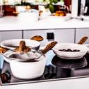 - Trwała powłoka nieprzywierająca: wewnętrzna powierzchnia naczyń ułatwia gotowanie z minimalną ilością tłuszczu i zapobiega przywieraniu potraw