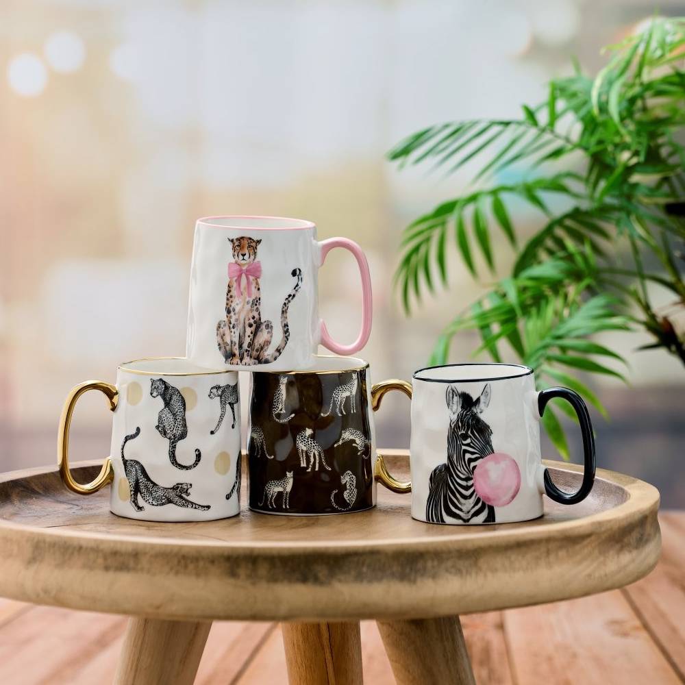 • Kubek z motywem dzikich zwierząt Zanzi: dekoracyjny wzór dopasowany do różnych wersji graficznych