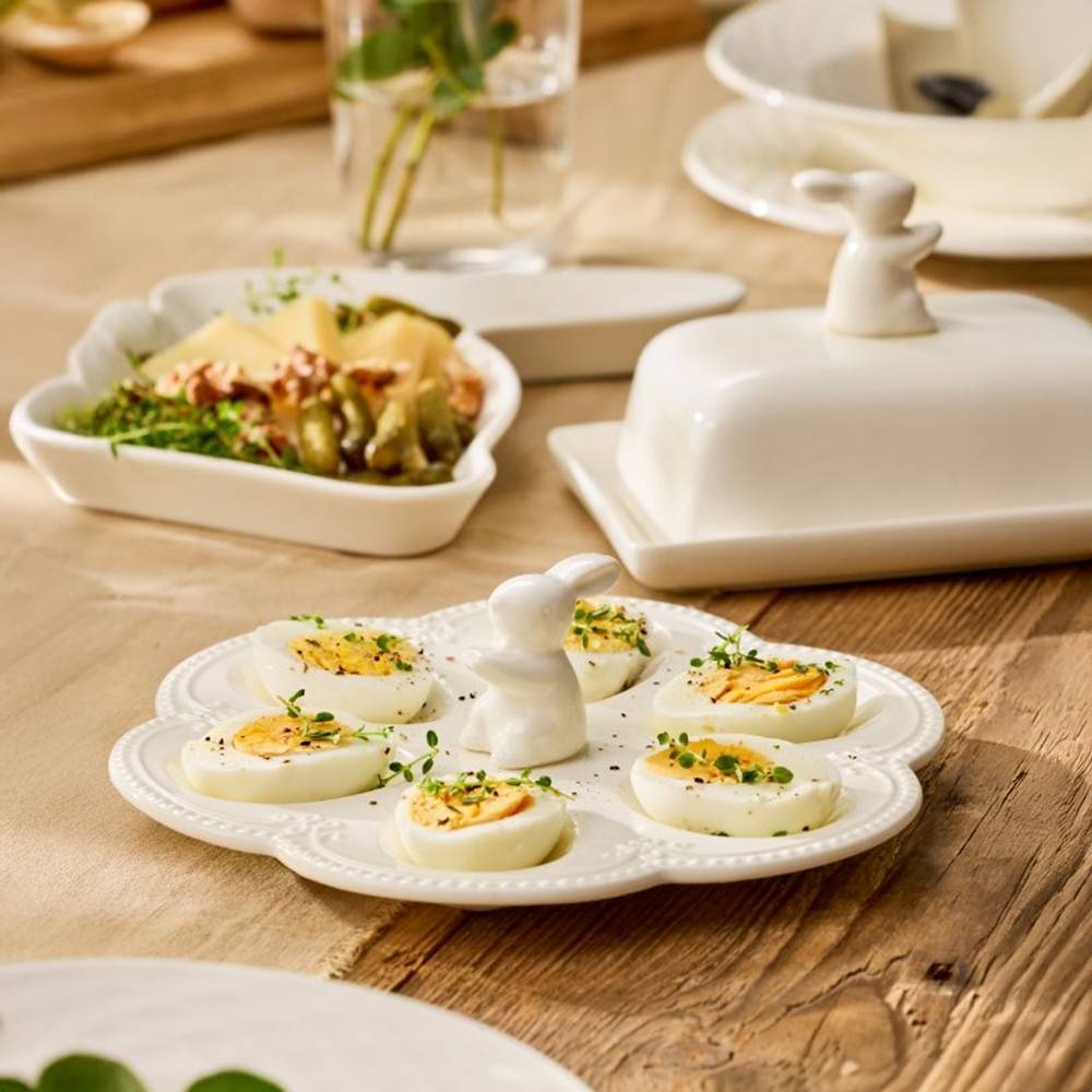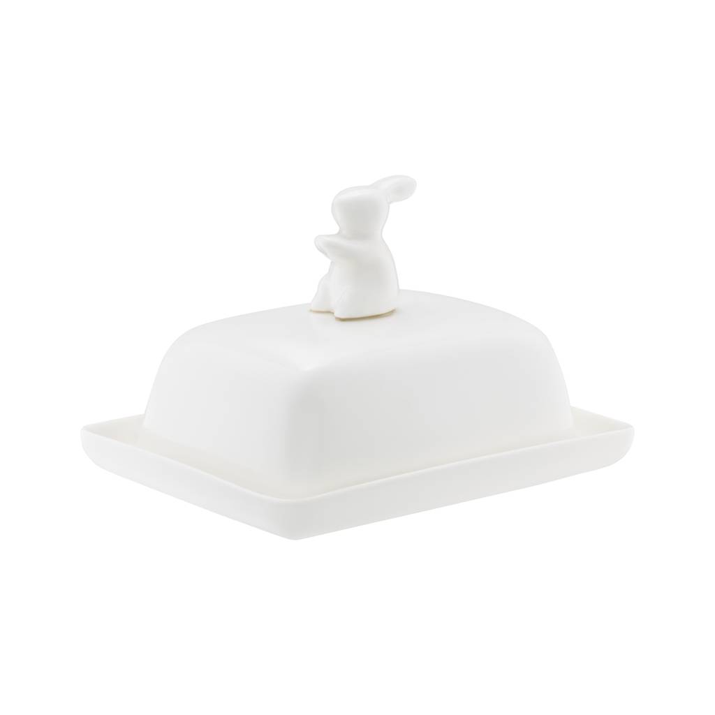 • Biała maselnica z pokrywką Zajko: dekoracyjna figurka zajączka podkreśla wyjątkowy charakter kolekcji