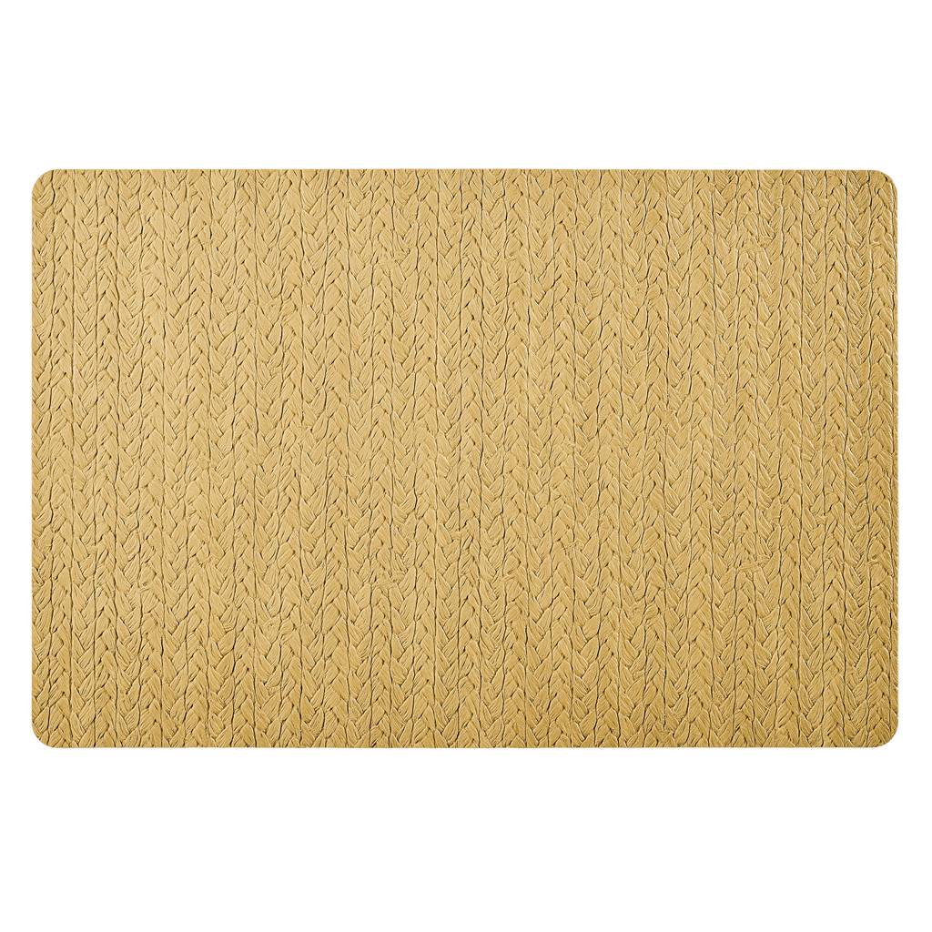 Powierzchnia maty przypomina plecioną fakturę, która nadaje jej przytulny i naturalny charakter. Dzięki temu podkładka dobrze komponuje się z nowoczesnymi oraz klasycznymi aranżacjami stołu.