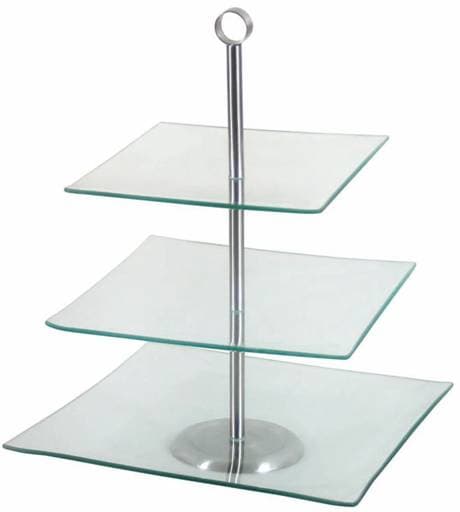 Dwie szklane półki pozwalają na eleganckie i praktyczne ułożenie słodkości, owoców lub przekąsek, dzięki czemu patera prezentuje się wyjątkowo na każdym stole.