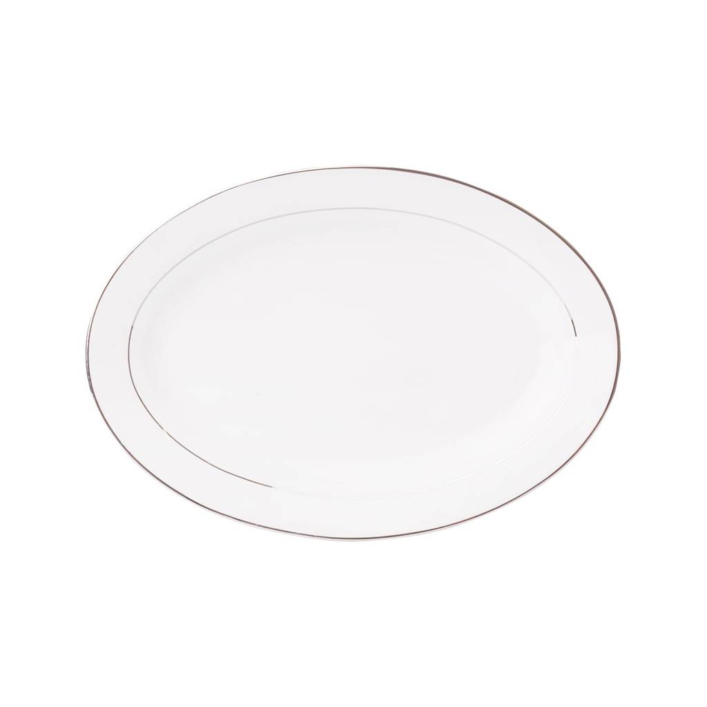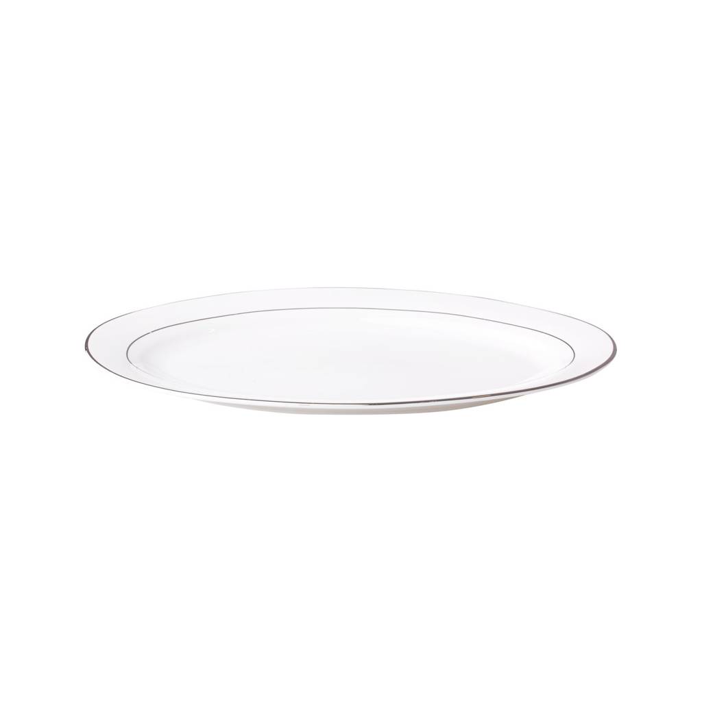 Delikatne srebrne linie na brzegu półmiska dodają elegancji, podkreślając jego klasyczny charakter.
