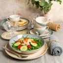Zestaw zawiera talerze obiadowe, głębokie i deserowe dla pełnej oprawy posiłków