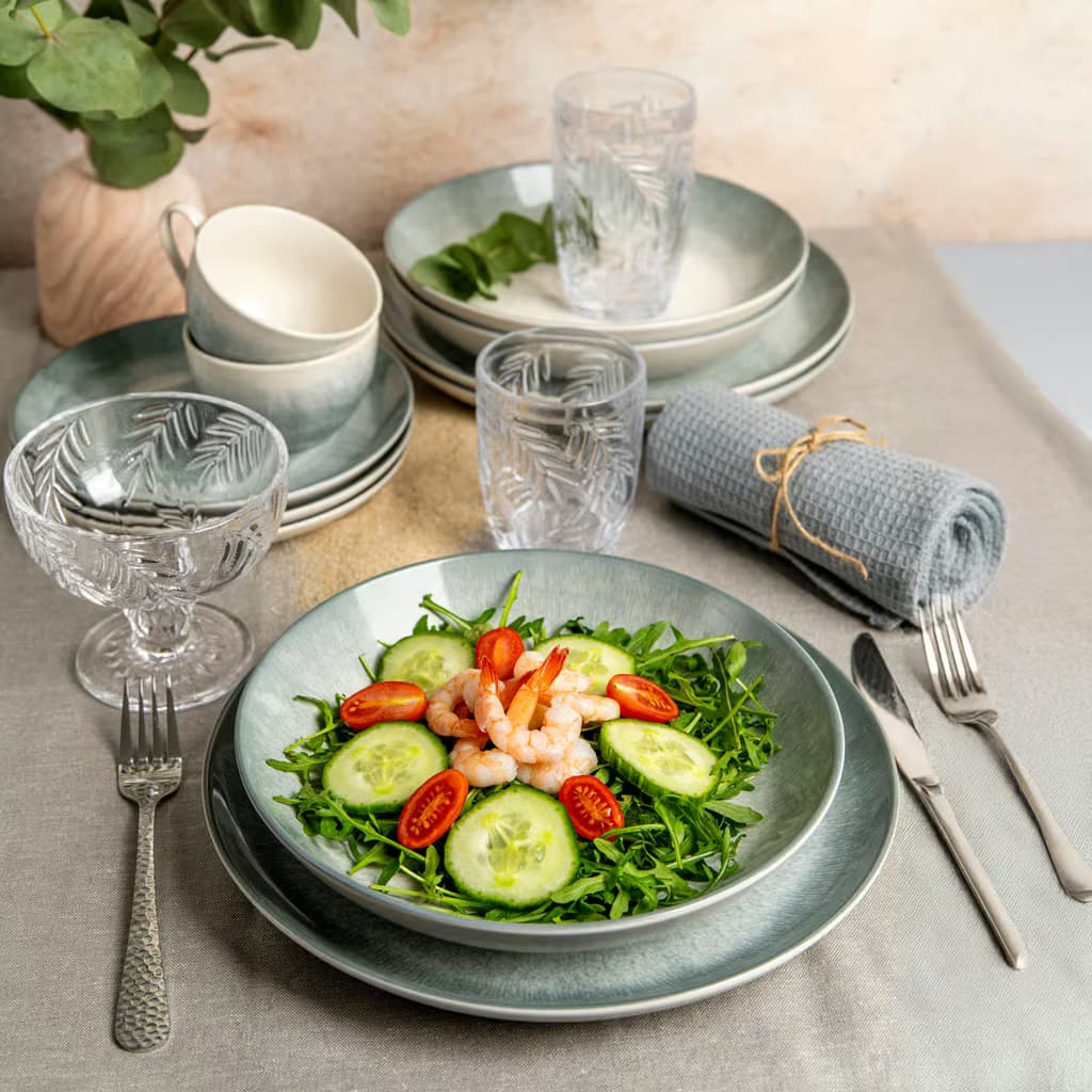 - Reactive glaze: unikalna technika szkliwienia zapewnia wyjątkowe wzory i głębię koloru, przez co naczynia mogą nieznacznie różnić się od siebie